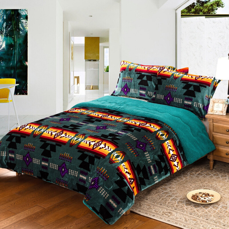 Blanket Silk Touch Sherpa Lined 3pc Queen Navajo [0216]